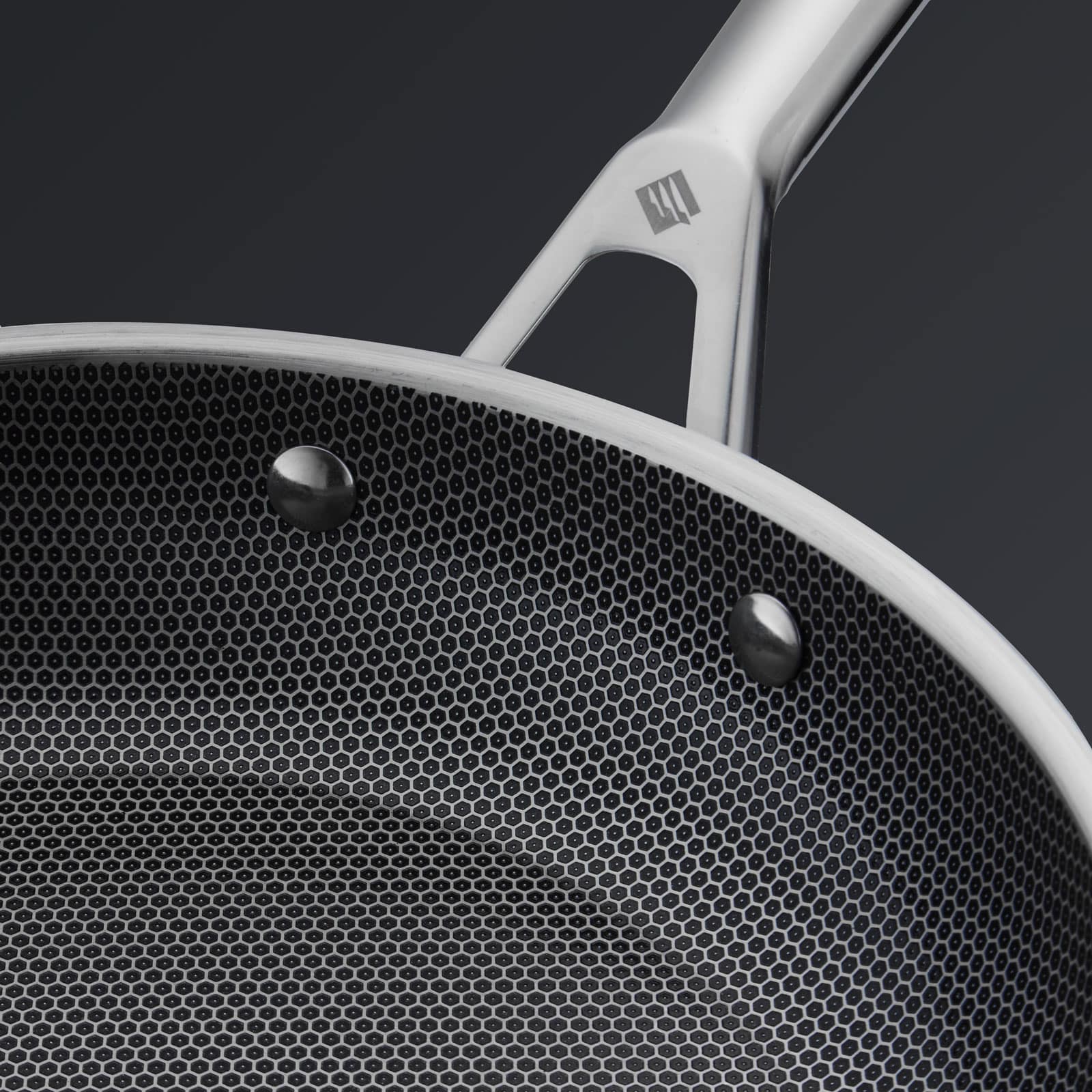 Hive Hybrid™ combines lightweight, advanced 30D Stainless steel. Along with the Hive Hybrid Ceramic nonstick surface, without any harsh chemical coatings.